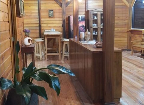 – Feita com eucalipto rosa, madeira de lei e travessas em canela