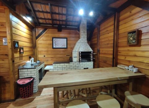 – Mesa de madeira com 10 cadeiras, balcão de 3m, cristaleira, aparador, refrigerador de bebidas e muito mais!