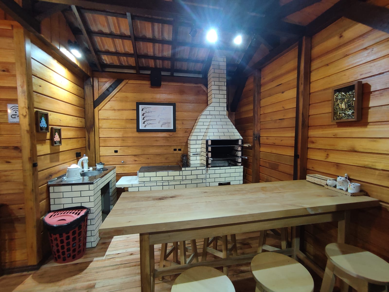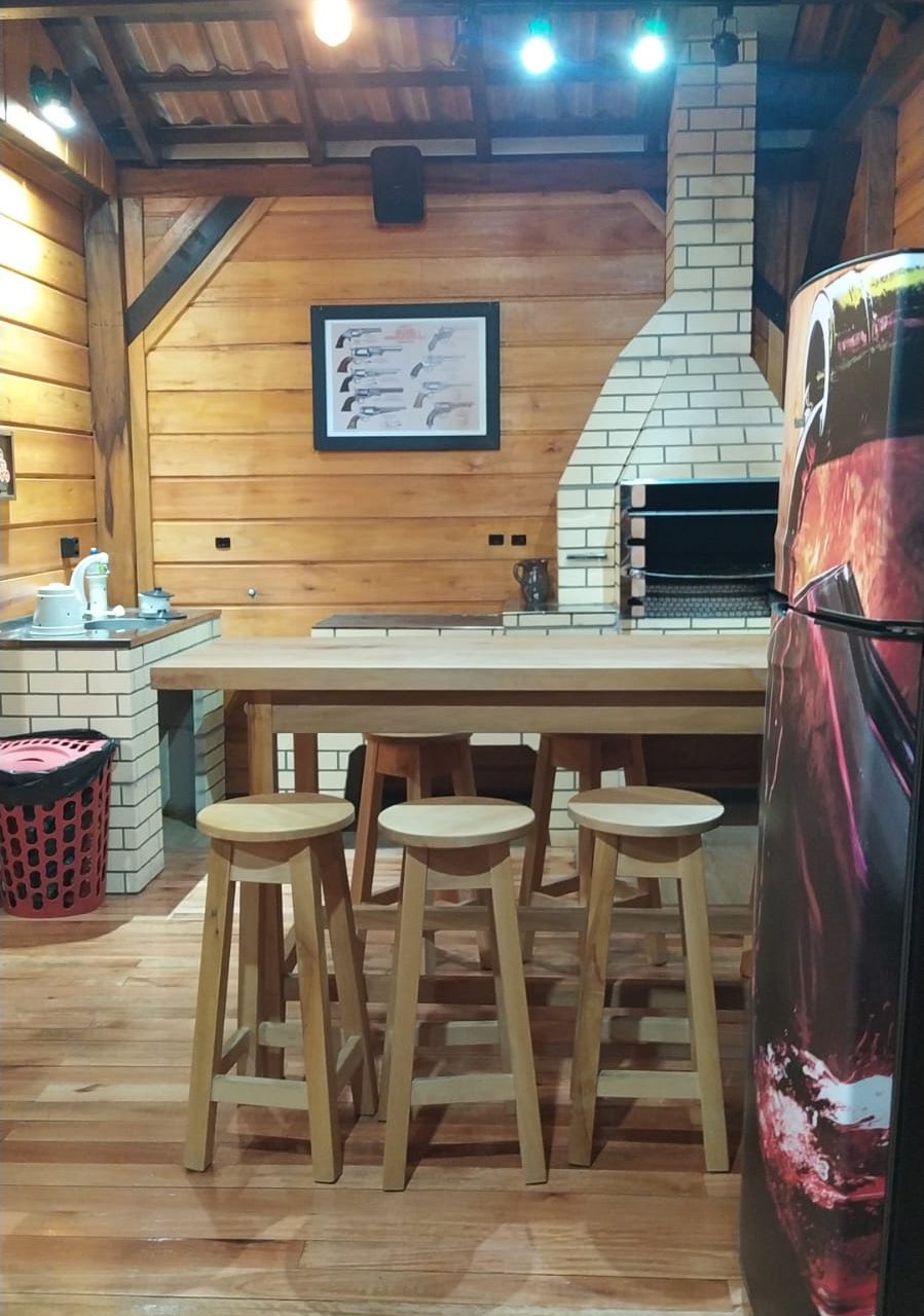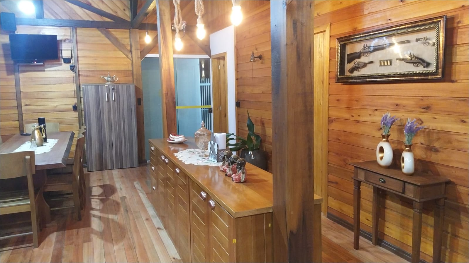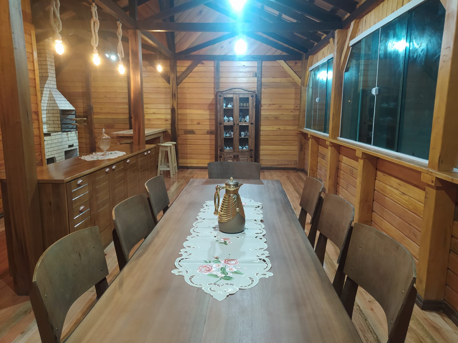 – Mesa de madeira com 10 cadeiras, balcão de 3m, cristaleira, aparador, refrigerador de bebidas e muito mais!