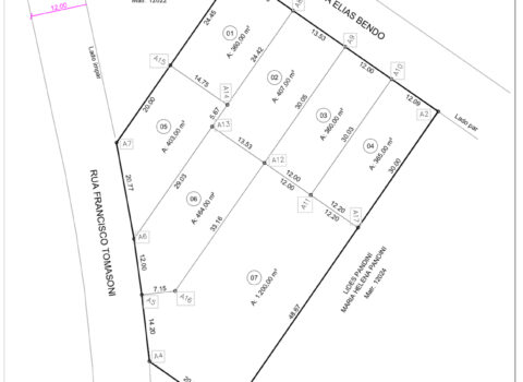 – 03 lotes com frente para a Rua Francisco Tomasoni;